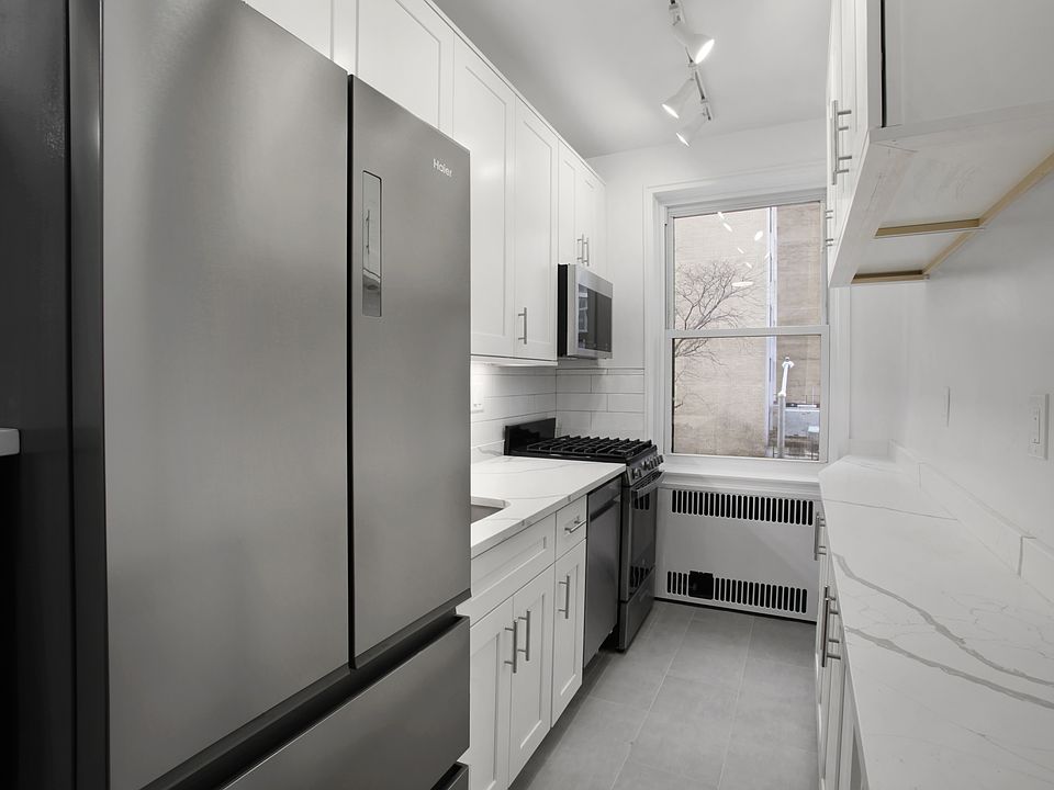 No fee oversized one bedroom that could be ideal for a share. Newly renovated, brand new kitchen and bathroom, south facing windows. Building has laundry, part time doorman, live in super and smart phone operated intercom when doorman is not on duty. Showings by appointment only.