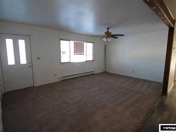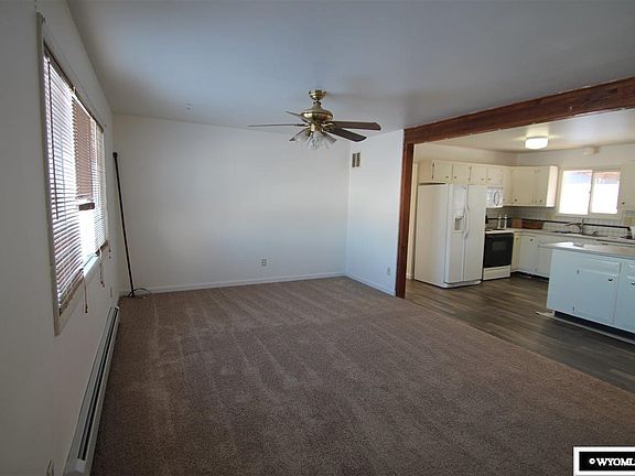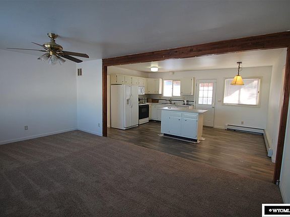 This 4 Bedroom Shoshoni home offers spacious living spaces and a great corner lot! As you enter the home you see a wide open concept floor plan with new flooring, paint and a kitchen island. The dining area offers back door access to a specious deck perfect for entertaining during warmer months! The 4 bedrooms are all light and bright with new carpeting to keep your toes toasty this winter! This home has a new roof, new heat system and attached work shop! A must see home for less than $100,000!