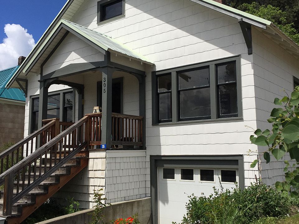 Large 2 bedroom, 1 bath home on the edge of the Roslyn Urban Forest. Great period details -- wall sconces, oak floors, high ceilings, claw foot tub. Unfinished basement with good ceiling height, garage. Fenced back yard.