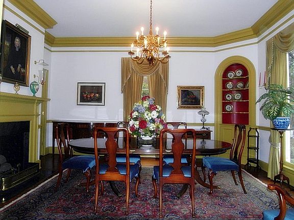 The Thweat-Brown Home-this Colonial Williamsburg two-story clapboard house circa 1863 was built by Harriet Rebecca Long Johnson.In 1977 it was restored to its Federal Style w/ new wiring and plumbing.During renovation the two parlor walls were found to have been lined with the Southern Confederacy,Macon Telegraph & Chattanooga Sentinel newspapers all from 1864.The front windows are unusual pairs of long single panes per sash separated by a slender pilaster.Locks,knobs,sconces and fixtures are solid brass.