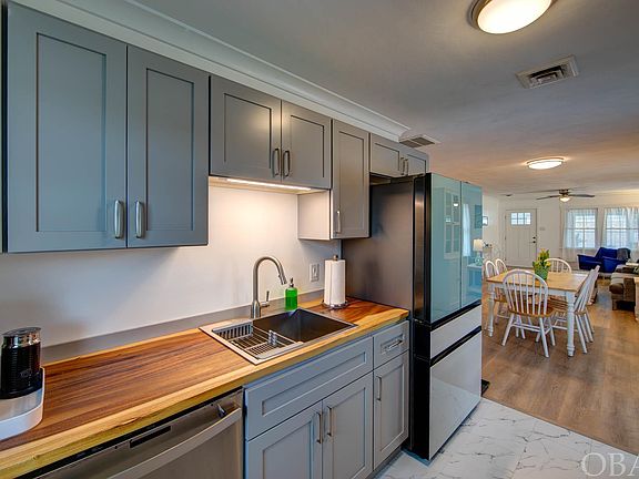 Welcome home! This updated coastal home is located just minutes from both the beach and sound. Inside, you'll love the modern and updated decor throughout. The open concept living area is bright and airy, with plenty of natural light. This home is like new and features lots of upgrades, including new LVP flooring throughout, HVAC (2019), ductwork (2022), Anderson 400 Windows (2021 – except sunporch), Upstairs entry doors (2021), Garage door (2020), and bathroom vanities. The kitchen also received a complete renovation with new appliances, soft close cabinets, and stunning live edge acacia wood countertops  The 3 season sun room provides the perfect spot for relaxation and sipping your morning coffee. One of the perks of this home is the large storage area below the main living area, which provides a dry entry plus plenty of space for a game room and stashing your beach gear. The voluntary HOA provides boat ramp, sounds access and ocean front parking for a minimal annual fee. With nothing left to do but move in and enjoy, this well cared for home is waiting for you!