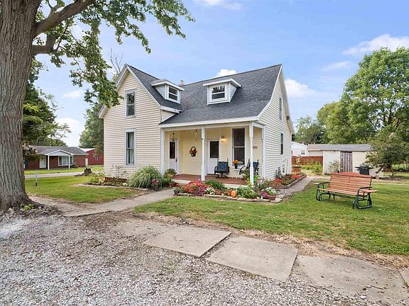 Lover of older homes ? Don't miss this opportunity. Located on corner lot right in the town of Elberfeld close to the school and ball park. New in August of 2021: Roof, HVAC system, windows. flooring, interior painting. Main Level laundry remodeled kitchen with cabinets, and counter tops and LV flooring. Lots of pantry shelves. Bedroom and home office on main level. Bath is updated. The upstairs has a loft area for bonus room and 2 more bedrooms. Koi Pond in back yard ( fish excluded) lots of pretty perennial flowers. Peach tree blueberry bush. One and 1/2 lot Room for garden the potting shed will delight the gardener. Will be ready for immediate occupancy.