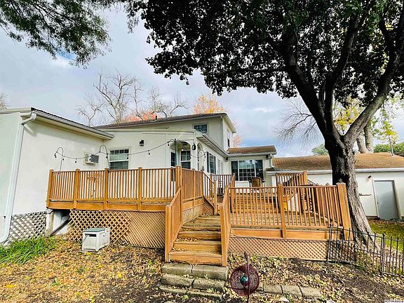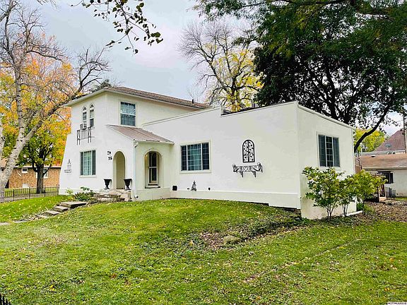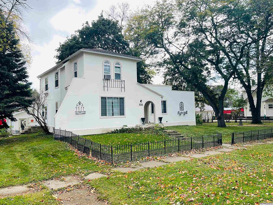 Spanish Style home. Main floor bedroom, bath, and laundry, eat-in kitchen with cherry cabinets.Second floor has two large bedrooms and a full bath. Patio door to deck and backyard Attached 2 car garage plus additional single garage on the backside of the property. "Project" 22 x 39 side cottage that would need attention if wanted to remodel. Large backyard. Worth County Scholarship Opportunities available.