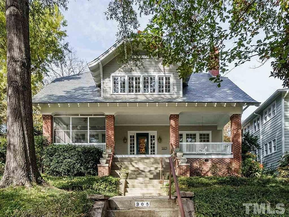 View Buttercups blooming in Green Park from the large, front porch (partly screened) of this restored 1920s architectural gem, the Page-Bishir House. It has a sociable floor plan with large, sunny rooms, Butler's pantry, eat-in kitchen with a w/in pantry. A mud room leads to a patio/garden and rear alley private parking. It is a distinctive plan, offering optional uses of the 4 large BRs, 1 down, 3 up. Each has a w/in closet and bath access. One opens to a sun room, another adjoins an office/nursery.