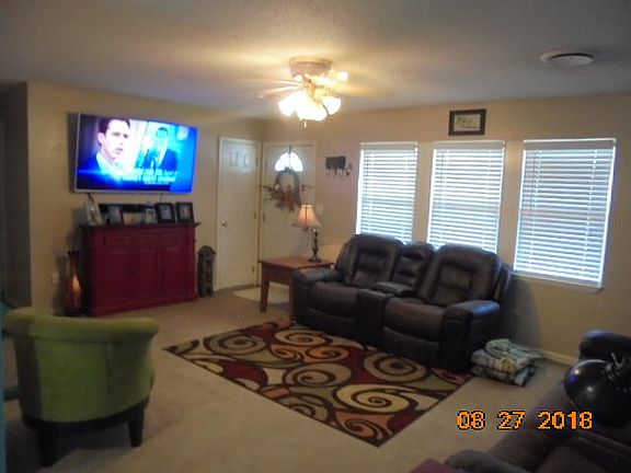 House is a great 4 bdrm. close to school and other stores, post office... Storage room in back of carport. Nice storage bldg in back yard. Deck off back porch.