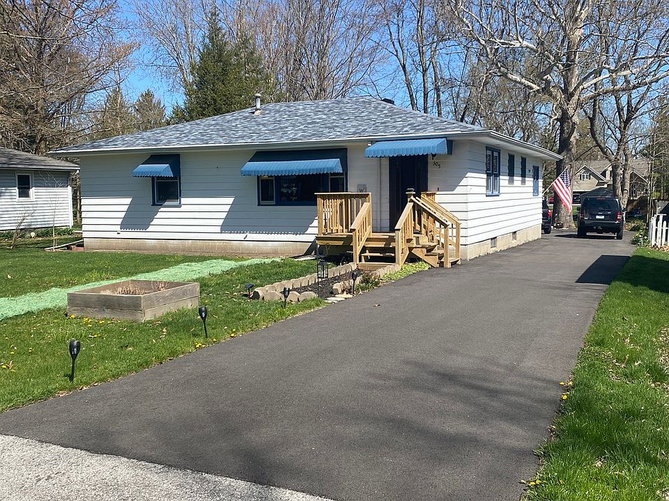 Wonderful home in a quiet neighborhood the seller will miss in this charming 3 bedroom 1 1/2 bath ranch with full basement. New roof in August 2023, new driveway, new front porch, and well-maintained home. Enjoy the expansive deck, sitting by the firepit gazing at all the tulips and landscaping. Pride of ownership lives here. The owner is in the process of repainting the garage which has a newer main door and overhead door.