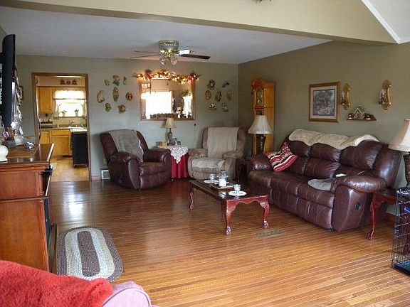 Well maintained ranch style home. Has hardwood floors throughout just put in 2012. Vaulted ceiling in living room. Oak cabinets in kitchen with sliding glass door to large deck. Nice back yard with plenty of privacy. 10x14 Shed does remain. Gas fireplace in family room. The basement is completely finished for additional living space. Attached large 2 car garage.