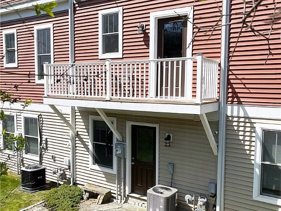 A short walk to Cornell and downtown, this townhouse is on a small, quiet Belle Sherman cul-de-sac. Built in 2015, home is in pristine condition and easy to maintain. Two bedrooms, each with full bath, plus bonus suite with full bath and private entrance. Gorgeous kitchen, with granite counters and stainless appliances, opens to the dining and living rooms. Enjoy morning coffee on the balcony. Lustrous red oak floors in living room, dining room, kitchen and powder room. Ceramic tile in the three full baths. High-end wool Berber carpet in bedrooms and stairs. Tall windows provide splendid natural light. Back door from bonus suite leads to landscaped Zen patio. Energy efficient furnace, central A/C, extra insulation. Attached garage with ample storage, 2nd car driveway parking. Living room and bedroom furniture plus Sony TVs, surround-sound, included. East Ithaca Recreation Way just 50ft from back door for walking, running, biking. Easy access to miles of trails through natural preserves and Cornell Botanic Gardens. $130/mo HOA for grounds and street maintenance. Short walk to E Hill Plaza with grocery, gym, pharmacy. Open house 5/26 Sunday 2-4pm