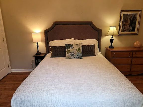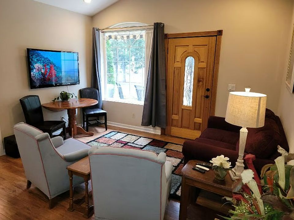 Beautifully furnished suiteLush peaceful surroundingsCozy bedroomSpacious walk-in closetPrivate patio entrance