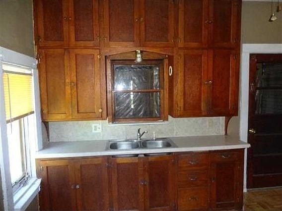 Affordable little north side home. This property would be a good rental or starter home. Some hardwood floors and kitchen has original stained wood cupboards. Recent updates include some thermo pain windows and 100 AMP electrical breaker box. The detached one car garage does have a separate back storage area. This property is being sold "as is."