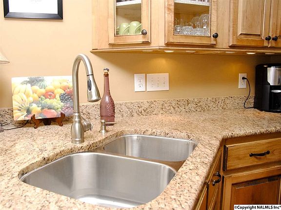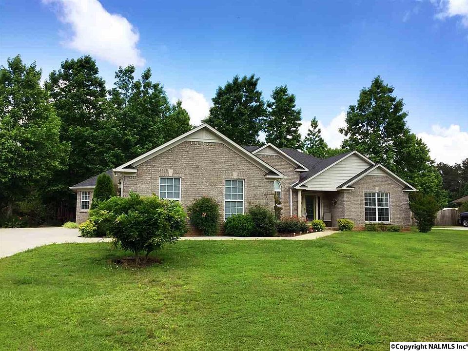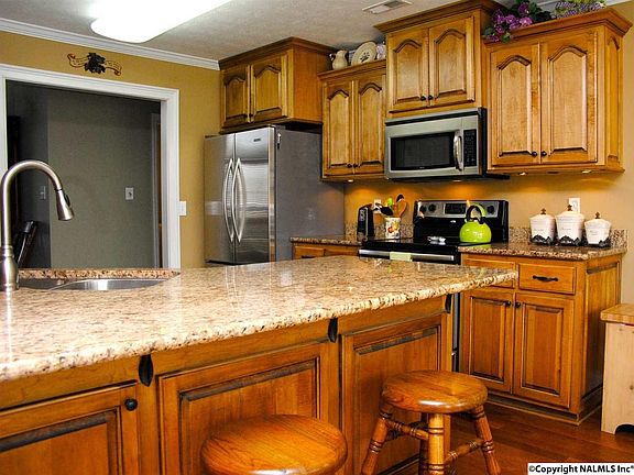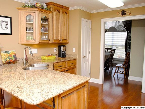 Contact tommy@tommysplace.net, 256.722.9333. Enjoy changing seasons and rolling hills as you approach this beautiful custom home with carefully considered amenities. Recessed and task lighting, handsome granite counters, stainless steel appliances and wood flooring in kitchen. Arched window and cove lighting in dining room. Corner gas fireplace, fluted columns and plant shelf in family room. Isolated master with glamor bath and twin studies. Shower and sink in garage (great for dog washes or quick cleanups). Shed with covered extension has incased underground electrical and plumbing lines.