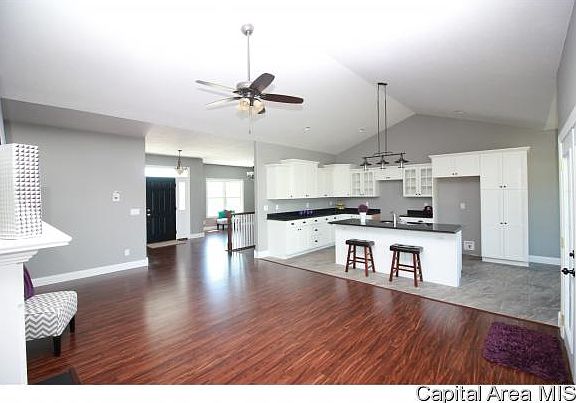 GORGEOUS new construction home located in the backyard of a 20 acre park with walking trails to school and a stocked lake. This beauty offers solid h/w throughout, granite counter tops, vaulted ceilings, walk in closet and a HUGE, finished, lower level family room. Retreat to the master suite, split from other 2 rooms and enjoy your spa like experience in the SPACIOUS bath which features a utility cabinet, his/her sink, custom tiled walk in shower. Relax on the covered porch and watch the storms roll in. Floor plan is open for entertaining and offers eat in kitchen in plus formal dining.