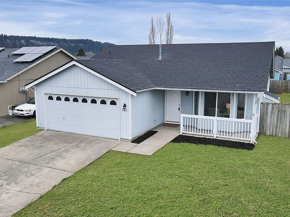 Welcome home to this FULLY RENOVATED, move-in ready rambler near High Cedars golf course & the heart of Orting. You will greatly appreciate the attention to detail on the updates. The layout offers excellent flow throughout the living room & kitchen with a sliding door leading to the backyard. The gas fireplace in the living room easily warms the space. The primary bedroom includes a private 3/4 bath. Two additional bedrooms provide options for work-at-home or guests. You'll enjoy sitting out front on your porch or hanging out back on the patio. The home is situated on a large lot, offering plenty of room for parking, pets & friends to enjoy. The backyard is waiting for your personal touch! All appliances & the storage shed will stay.