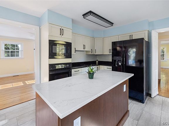 A rare find in this peaceful neighborhood - So much of this home has been recently updated, all it needs is YOU! This cape is sure to impress from the moment you see it. Entering Manakin Farms you'll notice the generous lots and mature homes and landscaping. This home fits right in with a little bit extra on the 3rd block, with it's recent complete Hardiboard upgrade on the exterior, new landscaping and hardscapes in the rear with amazing outdoor grilling and adobe oven. Inside, the foyer welcomes you with warm original wood floors and neutral wall tones into the living area, dining area, or into the newly renovated kitchen! The kitchen is complete with all new appliances, fresh cabinetry and a quartz island to extend your reach. The living area flows smoothly to the sunniest room around, with neutral ceramic tile and brand new thermal doors all around. For your convenience, all bedrooms are complete with a full bath. One suite on the first floor opens to the hall bath, while both bedrooms on the second floor include ensuite baths that are included within their space. All baths have been RENOVATED with oversized quartz vanities!