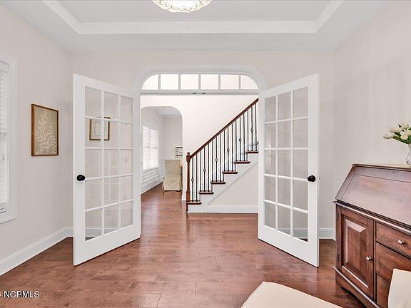 Welcome to 305 Wiregrass Lane in the centrally located Arboretum Community in charming Southern Pines. This home is close to shopping, within walking distance to Pinecrest high school, and convenient to Fort Liberty. It features 4 bedrooms, 3 full baths with an office and guest room on the main level. This home has curb appeal with a large front porch, beautiful mature landscaping, manicured shrubbery, and iconic Crape Myrtle trees. Inside you're greeted with a two-story foyer, wood flooring, open rail stairs leading to the upper level, and stately French door entry to the office. Across from the office is the formal dining room complete with coffered ceilings, wainscoting, and an elegant chandelier. From the foyer you enter the spacious living room which flows to the breakfast nook and kitchen with island. The kitchen is equipped with an under-mount stainless sink, walk-in pantry, stainless appliance package including French door refrigerator, double wall ovens, microwave, dishwasher, and 4-burner gas cooktop. The upper level has a spacious bonus room, Owner's suite overlooking the backyard with ensuite bath including a jetted tub, double sink vanity, walk-in shower, and a spacious walk-in closet. Three additional bedrooms round out the upper level along with a laundry closet with washer and dryer for convenience and a linen closet. This home also features a two-car garage with space for storage shelves or a workbench, a large and private fenced backyard with mature vegetation, paver patio with trellis, and a 3-season screened porch overlooking the backyard. The generator conveys! Community amenities include the following: pool, sidewalks, clubhouse, and playground. This home also comes with a generator and low maintenance and durable cement board lap siding and stone veneer. This home is turn-key ready - make it yours while it is still available.