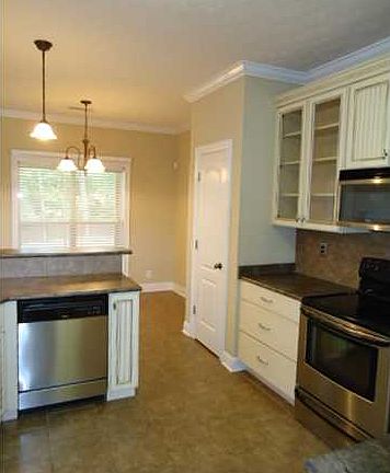 Beautiful home located on the last cul-de-sac in the neighborhood. This well maintained 4 bedroom 2 bath home has a completely private, fenced back yard and features a very open floor plan. The kitchen has a breakfast nook, breakfast bar, stainless steel appliances + refrigerator and beautiful antique finish cabinets. The master suite will accommodate any size bedroom furniture, has trey ceilings,split double vanity, corner jetted tub, separate shower and water closet. The home has 12' ceilings, crown molding, ceiling fans and 2 "faux wood blinds throughout. Laundry room has cabinets and a large sink. For the long hot spring and summer days, there is a screened in porch which overlooks the deck and huge back yard. The home also has a custom built detached storage building. Great neighborhood and a home that you could enjoy! It will be available the middle to end of June!