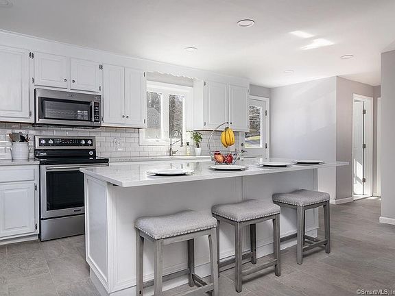 Look No Further! This beautifully renovated cape has been updated from top to bottom! Upon entering this cape cod style home you will be greeted by a spacious family room with a brick fireplace and large open staircase. The main living area also offers hardwood floors throughout, a generous sized kitchen with new appliances, white cabinets, quartz counter tops and a large island great for entertaining and extra seating. Off the kitchen you will find a formal dining room, along with a separate sitting area/formal living room that is surrounding by wall to wall windows which allows for great amounts of natural light to enter the home. The second floor boasts 3 bedrooms, a separate laundry space and a full bathroom with a double sink vanity with granite counter tops. The exterior features a fenced in yard, an abundance of off street parking, a front porch and large back deck, Conveniently located just minutes from the shops and restaurants in downtown Putnam, and centrally located between Worcester, Hartford, and Providence, not to mention easy access to RT 171, and I-395, this home is ready and waiting for its NEW OWNERS!