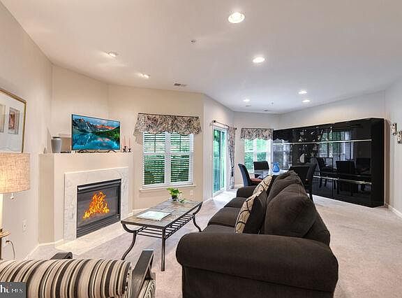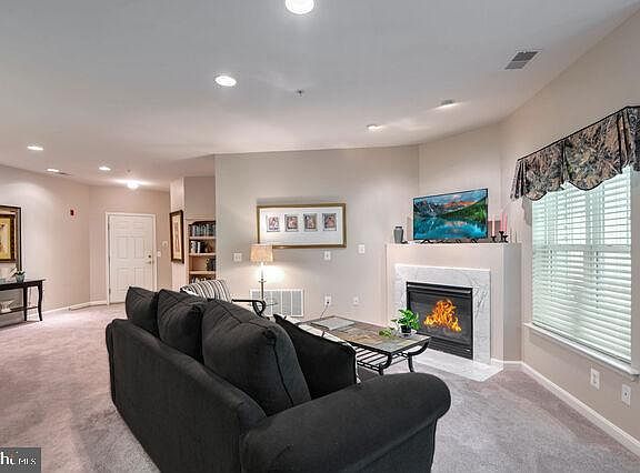 Welcome to this stunning 2-bedroom, 2-bath condo in an exclusive 55+ community, offering the perfect blend of convenience and elegance. Located in an elevator building, this unit features an open floor plan designed for easy living and entertaining. As you step into the welcoming foyer with a guest closet, you'll be greeted by a spacious living room with a cozy gas fireplace eyeball recessed lighting. The adjacent dining room boasts a sliding glass door that opens to a private balcony, perfect for enjoying tranquil views of the lush woods. The large, open kitchen is a chef's delight, complete with Corian countertops, stainless steel appliances—including a range, refrigerator, built-in microwave, and dishwasher—and a double bowl stainless steel undermount sink. A pantry provides extra storage for all your culinary needs. Retreat to the expansive primary bedroom, where a ceiling fan and generous walk-in closet offer comfort and convenience. The en-suite bathroom is well-appointed with a double vanity, large soaking tub, separate shower, linen closet, and grab bars for added safety. The second bedroom is equally spacious, featuring a sizable closet, while the hall bath offers a shower/tub combo with a grab bar for ease of use. There is also a large laundry room with full size washer and dryer and additional shelving. Additional highlights include a separate storage room conveniently located on the same floor, and a beautiful balcony where you can unwind and enjoy the serene, wooded setting. Enjoy all the building has to offer including a large recreation area great for entertaining as well as a fitness/exercise room. For those with a green thumb there is a greenhouse as well as a gazebo to enjoy the outdoors. This home has it all—comfort, style, and a peaceful location within a vibrant community.