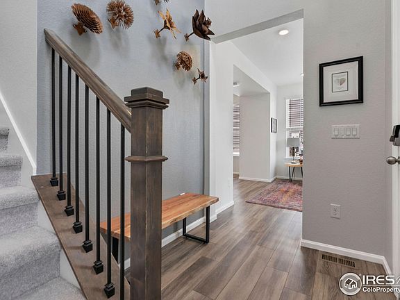 Mosaic thrives as a vibrant community representing the essence of Fort Collins' lifestyle! Located just a short drive or bike ride from Old Town, it encapsulates all the cherished aspects of Colorado, from the local breweries and scenic trails to the incredible restaurants and bustling nightlife. From the moment you arrive at this impeccable paired home, you will be captivated by the beautiful landscaping, modern interiors, and well-planned layout that creates an open and airy environment. With freshly painted walls and luxury vinyl plank flooring, this space offers the perfect backdrop for every occasion. The kitchen is a culinary dream come true, boasting stainless steel appliances, granite countertops, a gas range, and a spacious center island with a farmhouse sink that serves as a focal point for both cooking and socializing. With ample counter space and storage, this kitchen is as functional as it is beautiful. Work from home? There is a main floor office, which could also serve as a den. Upstairs, the spacious primary suite is a private retreat featuring a custom-designed walk-in closet and an en-suite bathroom with dual sinks and a glass tiled shower with a built-in bench. Two additional bedrooms are generously sized and offer custom closets and comfortable spaces for family members or guests. The laundry room is conveniently located near the bedrooms and the front-loading washer and dryer are included. The finished basement downstairs provides extra living space and the perfect place to entertain with room for both a media area and a pool table. Outside, the privacy-fenced courtyard is your own outdoor oasis. Whether you're hosting a summer barbecue or enjoying a quiet evening under the stars, the deck and patio are the ideal spots to relax and unwind. This smart home allows you to control the lights, doors, and thermostat from your phone and has a WiFi booster on every floor. The Mosaic neighborhood features two outdoor pools and an upcoming 20-acre park.