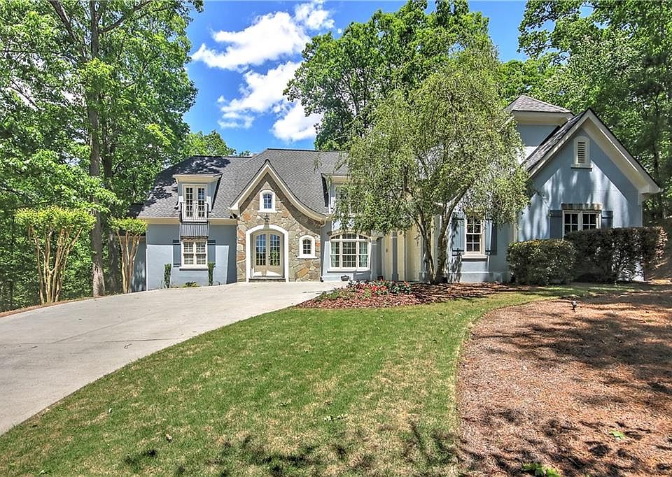 First Time on Market!! 2 miles from Downtown/Historic Roswell. This stunning French Country custom designed and built by original owner is located at the back of the neighborhood in the most tranquil of settings sitting on 2.42 Acres in the heart of Roswell. This Hardcoat Stucco and stone home offers beautiful architectural features and the prettiest views from every window. You enter the home through glass arched double front doors into a large and welcoming entry foyer. The Dining Room is to the right with wall of windows overlooking the front yard and offers an alcove perfect for a buffet or china hutch. You pass through the entry foyer into the breathtaking 2-story Great Room with cathedral ceiling and beautiful exposed decorative wood trusses, 2 story stone fireplace, 2 story wall of windows overlooking the awesome expansive entertaining deck and acres of trees/privacy. The rear stairs are between the Great Room and the Keeping Room where there is also a door leading out to the large deck. The Keeping Room offers a 2nd fireplace and is open to the Chef's Kitchen. This beautiful Kitchen offers custom cabinetry, granite counter tops, coffee bar flanked by floor to ceiling cabinetry with pull out shelving in each and glass cabinetry above. The Kitchen offers a gas cooktop with range hood and pull out shelving at cooking station, wall oven, microwave and walk-in pantry. There is a large Mud Room / Laundry Room off of the kitchen with a built in folding table with cabinets, cabinets above the washer and dryer and a mud sink. There is a oversized 2 car garage just beyond the laundry room. The 2nd floor offers 3 very good sized bedrooms (one currently used as an office). 2 of the bedrooms open to a Jack/Jill beautiful marble bathroom with a tub/shower combination and double sinks. The bathroom is also accessible from the hallway for the 3rd bedroom. One of the upstairs bedrooms has a set of glass french doors that opens to a Juliet iron balcony overlooking the pretty front yard and stunning streetscape. The Terrace level offers a large unfinished room perfect for storage/workshop/or can be finished. There is a open family room space, a custom bar area with built-ins and a refrigerator, a large bedroom currently being used as a workout room and a massage room that would be the closet for this bedroom. The lot that this home sits on is expansive and heavily wooded for complete privacy and very quiet. There is a small creek at the very back/bottom of the property that is visible when the leaves are off the trees. The oversized deck has 3 levels (please watch your step) and a beautiful gazebo. There are a set of stairs that lead down to the backyard at the Terrace level with a stone patio and fire pit. There are stone stairs that lead back to the front of the home as well as landscape lighting. This home is not part of the neighborhood HOA as it was not built as part of. No HOA rules apply. A true 10!!