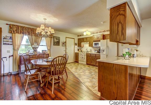 Convenient location - close to restaurants, shopping & YMCA, open floor plan, lots of cabinets & counter space, hardwood floors, fireplace, french doors to patio & privacy fenced yard. Roof 2006.