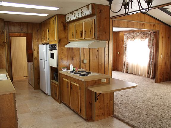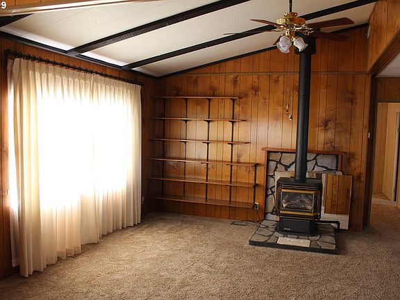 Sweet piece of real estate. Owner pride shows throughout this property. 1980 Sherwood manufactured home features, three bedrooms, two baths, vinyl windows, vinyl siding, updated Pex plumbing, gas stove, heat pump and more! Detached double car garage w/work shop & fruit room, fenced garden area, shop with a double carport, rv parking with 110 power and clean out. A must see property!