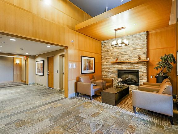 Welcome to BRIDGES! 2 BED + 2 BATH, beautiful condo w/ fantastic views. Modern kitchen w/ stainless steel appliances, granite countertops & plenty of storage. Relax by the fireplace in the living room that leads out to the covered balcony overlooking Town Center Park & Lafarge Lake. Master-bedroom w/ 4 piece ensuite. Central location gives you short walk to Lafarge Lake-Douglas Skytrain station, all levels of schooling, parks, restaurants, shopping & Coquitlam Centre Mall. Open House Saturday 1-4PM.