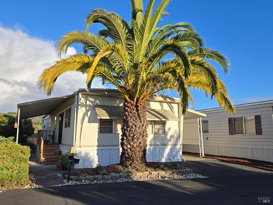 Enjoy the views of hills and open space from this cozy, 2 bedroom, 2 full bath mobile home conveniently located near shops and transportation in all age park. In addition to the great low space rent of $525 for a new owner and no rear neighbors, this desirable naturally filled light home with full front wall windows, features a formal dining area; primary bedroom with walk-in closet; free standing gas living room stove; areas of newer flooring; partial dual pane windows, newer evaporative cooler, washer/dryer, refrigerator with ice maker and two additional outdoor sheds for that needed extra storage. New roof put on in 2023 and a community that provides a clubhouse, pool and fenced in greenbelt area makes for a perfect starter place for first time home buyers or as a quaint place to downsize and call home!