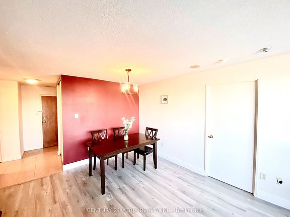 Den /Bedroom 2 has a large window and is as big as a bedroom. ALL INCLUSIVE: INCLUDES Central Air Conditioning, Common Elements, Hydro, Heat, Water, Parking, indoor pool, gym, recreation room, sauna, etc. Bright large windows with a South east gorgeous view, open concept, 2022/2023 Upgrades with New fresh floors, Stainless Steele appliances, dishwasher, fridge, new porcelain floors in the kitchen with a back-splash ,Quartz counters, many cupboards, new bathroom ceramic floors in both, bathtub, shower,2 PC laundry ensuite, dining rm, living rm, Foyer, 2 bedroom(s). Walking distance to UofT Scarb campus. Shops, and Morningside Park. Close to the TTC and HWY. *Condo does not allow pets.