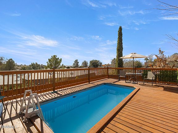 Authentic southwestern home in Majestic Hills with extensive upgrades. Major features include detached heated & cooled flex space, in-home sauna in bedroom, elevated outdoor living with thoughtfully framed, level pool and surrounding deck, enclosed patio, and fireplace with custom Spanish tile. New exterior paint, new flooring throughout (no carpet), fresh interior paint, updated kitchen with stainless appliances and new countertops. Jetted tub in second bath. Refrigerated air. Clerestory windows, skylight in office space, mountain views. Close to Memorial Medical Center, shopping and dining. Enclosed yard, storage shed, catio. 3 bed, 2 bath, Move-in ready.