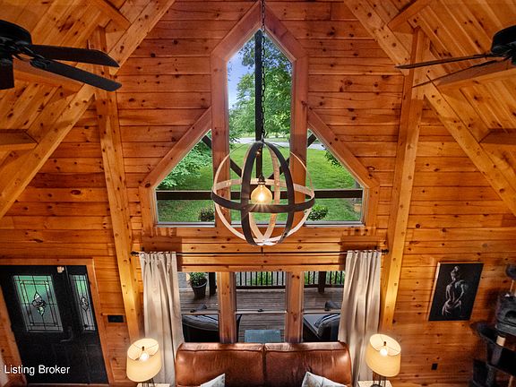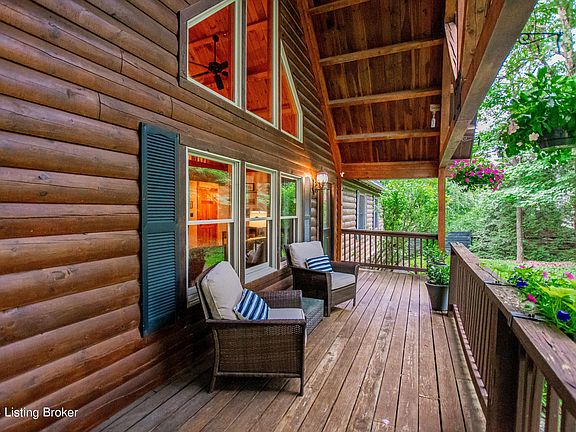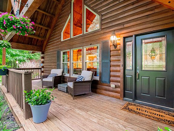 Custom-designed Northeastern Log Home of Yellow Pine Core Wood. This gorgeous modern cabin style home has many updates including a large kitchen with adjoining mud room and a cozy screened in porch just off the eat-in area. On the first floor a spacious primary bedroom boasts dual walk-in closets and an ensuite bathroom featuring a new shower and new vanities. The first floor has two additional bedrooms and a second full bath with new vanity. A spacious, yet private loft overlooks the great room with ample closet space and extra attic storage areas which can be used as another bedroom, office or entertainment area. The finished walkout basement includes a family room with a stone hearth, gas fireplace, pool table, third full bath, plenty of unfinished storage space, and a wet bar. The basement also includes a large finished bonus room great for an office or recreational room. Great neighborhood in the Oldham Co school district that includes a full basketball court, walking trail and nature park. The house also has a new roof (2024) a new hot water heater (2023) and new carpet throughout the entire basement (2024).