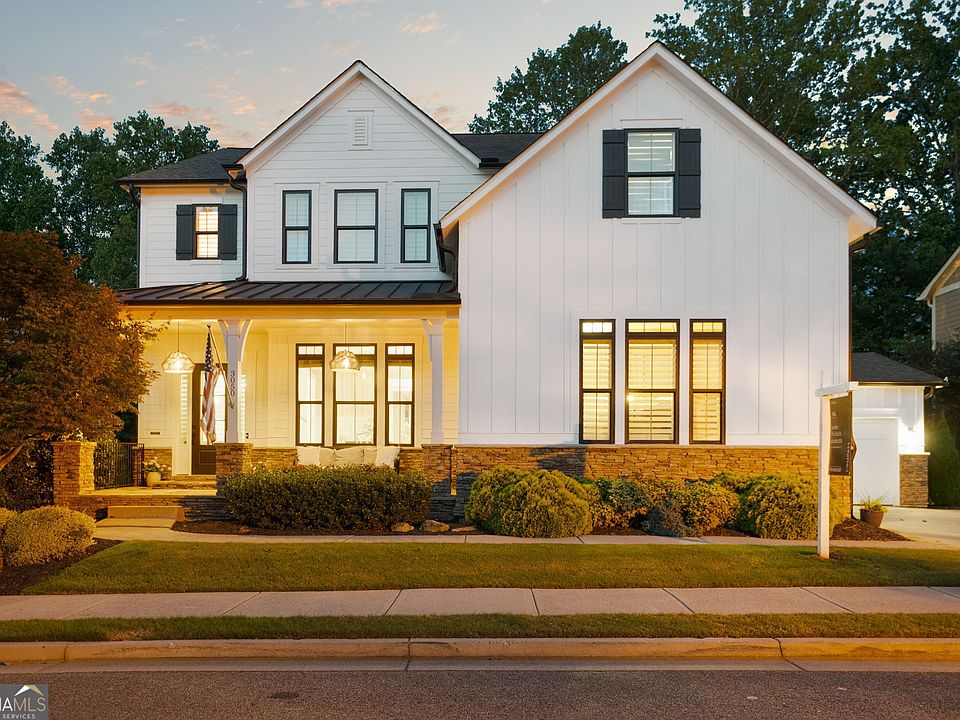 Perfectly positioned on the southern tip of Milton-only 1.5 miles from the heart of Downtown Alpharetta-this beautifully maintained home offers an incredible blend of luxury, functionality, and style. With a heated saltwater pool and spa, fully turfed backyard, and freshly painted exterior, the property is designed for effortless living and entertaining. Inside, a welcoming foyer opens to an expansive main level where the kitchen, family room, and dining spaces flow seamlessly together. The chef's kitchen boasts an oversized island, walk-in pantry, and premium finishes, all overlooking the light-filled family room. Step outside to a covered screened porch with a grilling area-perfect for year-round gatherings. A versatile guest suite on the main level provides flexibility for visitors or multi-generational living. Upstairs, the primary suite is a private retreat with double vanities, oversized closets, and a thoughtful connection to the laundry room. The fully finished terrace level is a true extension of the home, featuring a theater area with projector screen, newly finished bar, private office, and a bedroom with a custom Murphy bed. This home is also equipped with custom electronic shades and plantation shutters throughout. It's meticulous upkeep, thoughtful upgrades, and resort-style outdoor living make it a rare find-especially in such a sought-after location. Homes with a pool and finished basement at this level of quality are seldom available in the area.