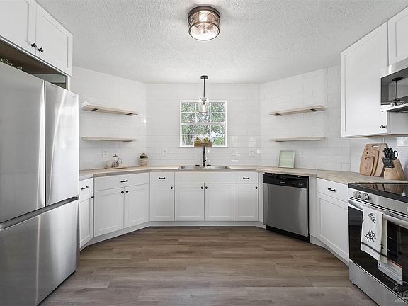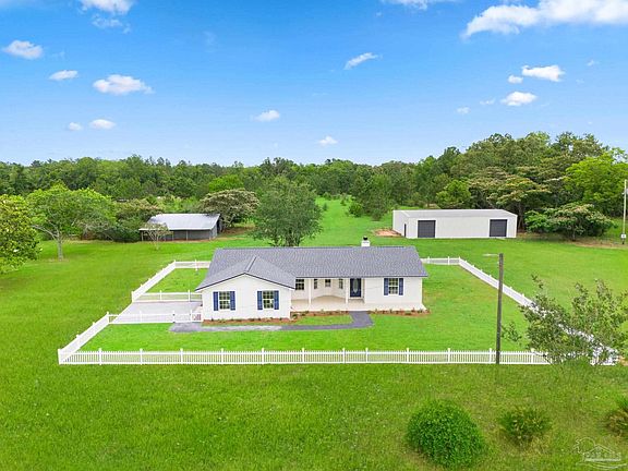 Situated within 13.35 of scenic acreage, and tucked away against beautiful timberland and the outdoor paradise of Blackwater River State Forest is a rare gem! A beautifully remodeled estate including a large 60’x40’ industrial grade Red Iron workshop complete with a full size hydraulic car lift. The property also has a stable to take care of your equestrian friends. The home is a must-see, fully renovated inside and out! Inside you are met with a luxurious home with an open and modern floor plan. Stepping across the threshold, you will enter the Great Room. This expansive space gives that sought after feeling of openness. Adorned with a traditional oversized fireplace and fine finishings. Adjoining the Great Room is an incredible kitchen, displaying brand new modern cabinetry, complete with soft close drawers. The new lighting fixtures highlight not only the elegant tile backsplash but also the upscale solid wood butcher block countertops, perfect for entertaining in the evening. This sprawling home was smartly designed with both a Great Room and a Living Room, providing space for everyone to have their own area. This home has luxury plank flooring throughout the open living areas. The spacious master bedroom allows for ample amounts of natural light through its own private patio doors. Your eye will be drawn to the complimenting master bathroom. Here you will find a modern vanity and a custom tile shower built for two, and an expansive walk-in closet providing ample access to all your personal effects. With all new lighting fixtures, all new plumbing fixtures, a new water heater, a new AC, and a new roof! The outdoor features the standalone powered Red Iron workshop with car lift. The horse stable allows you to ride off of your property right over to the marked trails of Coldwater Horse Trails. With 13.35 acres of private land, there is no shortage of space for all your activities and hobbies. Enjoy what Florida living is all about in your own private paradise!