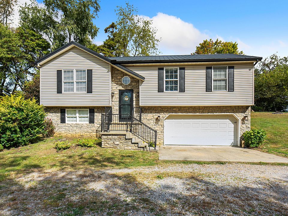 Nicely cared for 3 BR, 2 1/2 BA bi-level home w/a 2-car attached garage, located on 2 quiet, gently rolling country acres. Home features a huge living room with a large, sun-drenching picture window & soaring cathedral ceilings, a formal dining area, & a beautifully appointed country kitchen loaded with oak cabinets, all stainless appliances, & granite countertops, all with gorgeous hardwood floors throughout. The lower level boasts a massive family room. The primary suite offers a large closet & a full bath. Upgrades & extras include 6-panel doors, updated bathrooms, a huge deck, approximately 1/2 acre area perfect for a fenced pasture, a farm building/storage shed, an extra-large driveway with plenty of parking for an RV/boat, beautifully landscaped grounds, & more. Att Agents: See ATA.