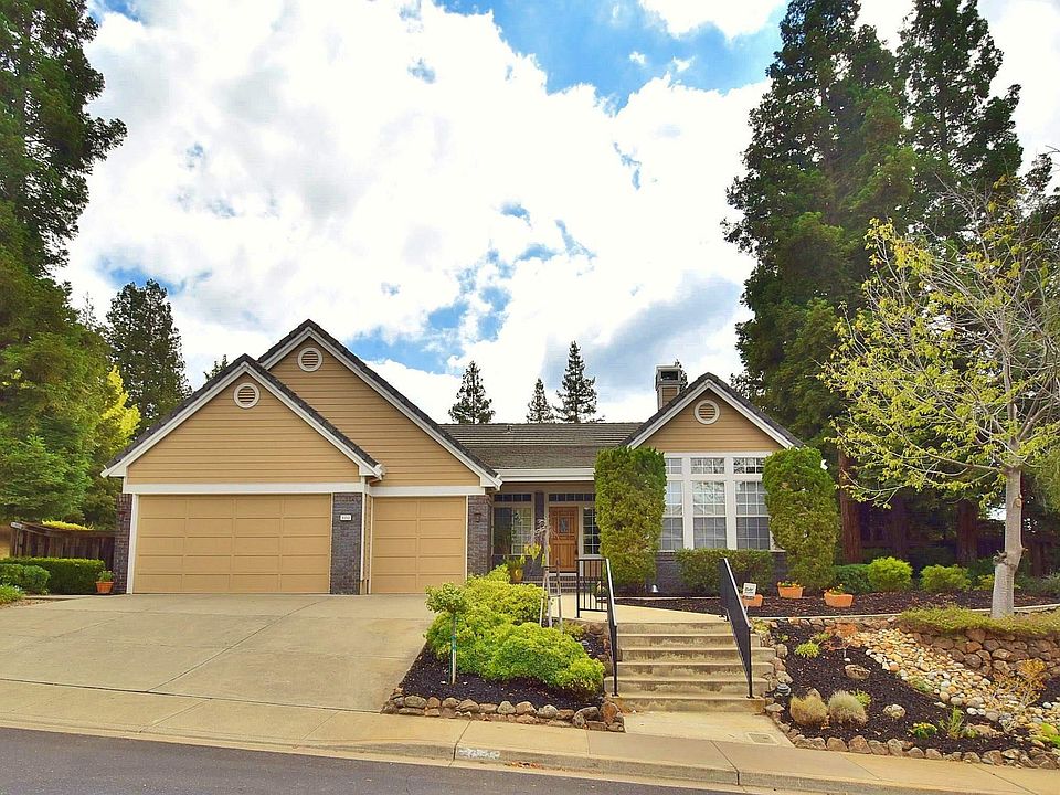 Sensational single story in Oakhurst's premier Eagle Peak neighborhood! Living room and dining room feature dual fireplace. Large, open kitchen family room combination with slider to the backyard. Spacious primary bedroom with double door entry, french doors to backyard, and fireplace. Primary bath has dual sinks, jetted tub, and separate shower. Beautiful low maintenance yard with arbor, patio and potting shed. Fully finished three car garage with extra storage cabinets. Central heat and air, laundry room, fresh interior paint. Refrigerator, washer and dryer included. Enjoy concerts in the park, hiking trails, restaurants and all that small town Clayton has to offer!
