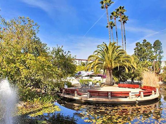 RESORT AMENITIES, NEAR BEACHES, 2 BR, PRIVATE TERRACE Large renovated ground floor unit with 2 bedrooms, one bath, plus 200 sq ft private and secluded terrace facing lush gardens, waterways, large pool/hot tub facilities, sand volleyball court, 2 tennis courts (nite lit), BBQ area, weights gym, sauna, steam room, billiards/games room, party pavilion. Large modern laundry room with 18 washers and 18 dryers. Wood floors, wall AC unit, Kitchen includes refrigerator, garbage disposal, dishwasher. Rent includes water (cold AND HOT) and garbage, gym and pool room. Covered tandem parking space for 2 large cars. One year lease at $2250/month, Renewable. Security deposit $1000. Available Now. NO SMOKING. NO PETS. Rent includes water (cold AND HOT) and garbage, gym and pool room.