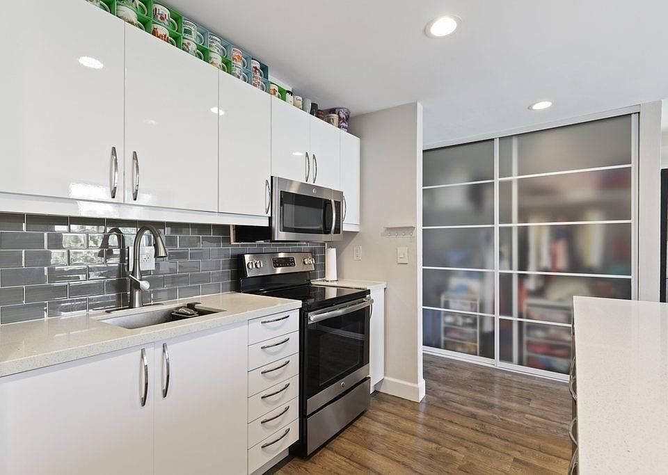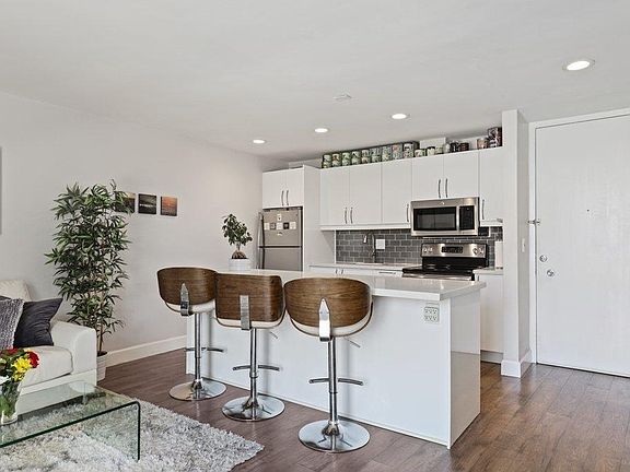 Beautiful Turn-key residence located in the desirable Pacific Isle gated community features an open floorplan, beautiful laminate wood flooring, as well as updates throughout including the kitchen, the bathroom, and new dual pained windows which make for an energy efficient, quiet, home. The kitchen features sleek white cabinetry, custom backsplash, stainless steel appliances, recessed lighting, and bar seating area.