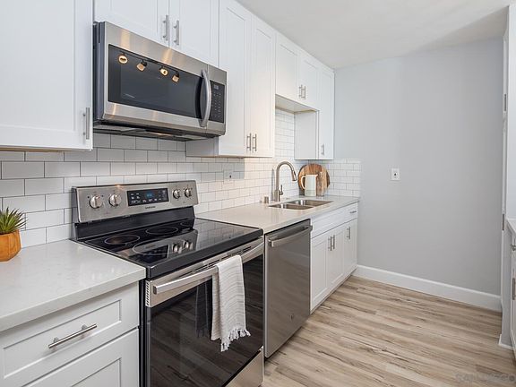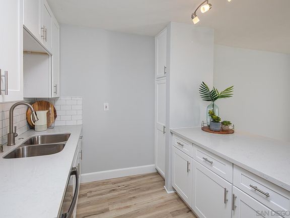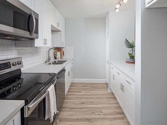 Available July 1st. Beautifully remodeled modern condo with resort style amenities in the gated community of Pacific Isle overlooking the pool and tennis courts. Abundance of light from the floor to ceiling windows. Newer kitchen with quartz countertops, stainless steel appliances, white shaker cabinetry, pantry, and breakfast bar. Spacious bedroom with huge closet and new modern bathroom with large vanity, custom lighting, and new fixtures. Upgrades include new luxury vinyl plank flooring, wall AC unit. Enjoy private heated community pool, spa, tennis courts, game room, gym, sand volleyball court, sauna, BBQ, club house, and koi pond surrounded by lush tropical landscaping. Assigned parking space + storage. Close to the beach within walking distance to shops and restaurants. Live in this resort community and feel like you are on vacation every day. No smoking allowed. One month of rent is due at signing. No washer or dryer in the unit. 1 assigned parking spot. Tenant pays internet, cable, and SDGE. 12 month leases.