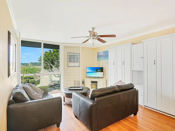 Updated condo in Point Loma located minutes from the beach with resort style amenities! This unit features dual pane windows, AC, dual twin murphy beds for additional sleeping, ceiling fans, wood flooring & granite countertops. The open floor plan welcomes you with abundant natural light, seamlessly connecting the living area, perfect for relaxation or hosting guests, to a contemporary kitchen boasting sleek countertops and ample storage. One assigned parking spot and storage locker are located by the unit, within a gated complex. Enjoy Sea World fireworks at night and resort style living during the day! Pacific Isle boasts a heated pool, jacuzzi, tennis/pickleball courts, sand volleyball courts, billiards, game room, gym, BBQs and a clubhouse. Conveniently located minutes to the beach, downtown, freeways, restaurants & shopping! Parking Spot #93.