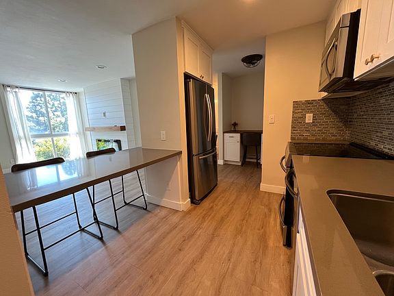 Pacific Isle is a resort style gated community featuring lush landscaping, water fountains and koi pond. Come relax and enjoy all the amenities Pacific Isle has to offer. A heated pool and spa, full gym, saunas, game room, tennis/pickle ball courts, sand volleyball, BBQ area, club house and laundry facilities. This adorable unit includes floor to ceiling south facing windows, an electric fireplace, updated kitchen with induction oven, updated bathroom, desk area and built-in bookcase, luxury vinyl planking through out and mirror closet doors in the bedroom. Unit comes with 1 parking space with both unit and parking conveniently located near the front entrance. One small pet allowed. Property is located less than two miles from the beach and minutes from Mission Bay One year lease required. Owner pays for water and trash. Tenant responsible for gas, electric and cable. No smoking in unit or in all common areas. A $35 application fee is required for credit check.
