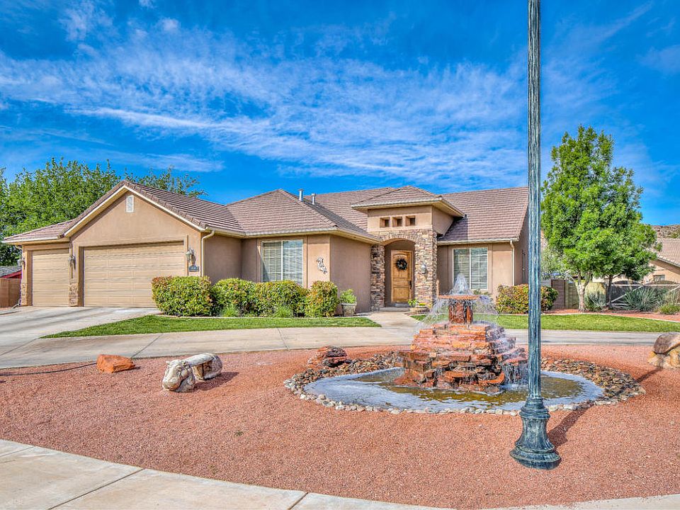 Best price per sq.ft. in newer homes! Large family/executive home in established desirable Bloomington Country Club. 3 Bedrooms, 2 baths, (or) den on main level - 7 bdrms total! Front/back full landscaping. Fountain, circular drive, full block wall fencing, RV space. Upgrades throughout with hardwood floors, marble, tile, glass block, granite counters. Carpet, paint allowance considered w/offer.