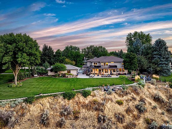 Located in one of the most opulent & exclusive communities in all of the Valley, this home is positioned atop the Eagle Rim & offers spectacular 180 degree views of Foothills, Bogus Basin & the 6th green of Banbury GC. Sitting comfortably on over 1 acre privacy abounds with a detached 960SF shop in addition to the oversized 3 car attached garage. Large flat useable backyard w/ample room for a future inground pool. 1 of only 25 rim lots overlooking Banbury Golf Course in the heart of Eagle. Undergoing a major renovation in 2015, this home boasts new double-pane windows, stucco, electrical, & plumbing upgrades. The entire house has been fully remodeled & updated. Room for the entire family w/3 ensuite bedrooms in addition to a jack & jill bathroom set up between 2 oversized bedrooms, library/office area, theater & rec room. Primary Suite is a dream w/private outdoor deck space w/hot tub to relax in while overlooking the valley. Dreamy large walk in closets and a spa like primary bath with soaking tub.