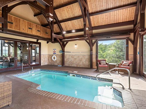 Over 5,000 sq.ft. of luxury living can be found in this stately, custom built home. Featuring 3 bedrooms, plus bonus room, 3 full baths, 2 1/2 baths, a private indoor heated pool, theater room and awe-inspiring mountain views, this home is second-to-none. The great room is highlighted by oversized, arched windows and stunning architectural detailing in the exposed wooden beams and stacked stone gas fireplace. The great room also features a dining area and expansive kitchen, complete with stainless appliances. Upstairs you will find an open loft game room, as well as a home theater room. The master suite offers a full bath with a walk-in shower and jetted tub. The remaining bedrooms are just as spacious. The massive deck is home to a bubbling hot tub, overlooking stunning mountain vistas.