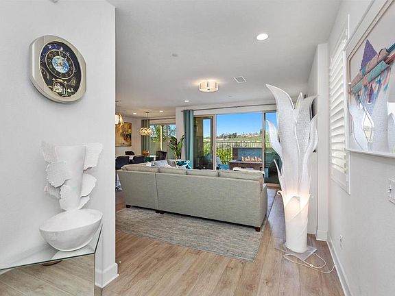 You will be delighted the minute you walk through the courtyard gate, step inside the door, and take in the spacious open floor plan with abundant natural light and views of the back yard which backs to the preserve, and features a built-in grill and fire pit with waterfall. Cooks will love the kitchen with gas cook top, stainless appliances, quartz counters, large island with pendant lighting, and plentiful storage. Upstairs you'll find the primary suite with double walk-in closets, a balcony to enjoy the views with your morning coffee, and en suite bath with dual vanities, soaking tub, and walk-in shower. There are 2 additional bedrooms, a full bath, the laundry room, and bonus space to use as you choose. Amenities at The Preserve include heated pool, spa, outdoor cooking area with tables, fitness room, seating areas, playground, and hiking trails. This home is conveniently located near shopping, dining, and services, with easy access to the 5 and 78 freeways. Carlsbad Village and beautiful beaches are within a few miles.
