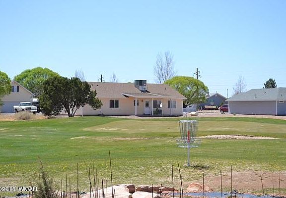 Great home located on the 6th Green of the Snowflake Golf Course. Expansive views from the rear of the house (summer time very green). Well kept home that shows well. Large living room as you walk in the front door, master bedroom with spacious walk in closet with plenty of shelving. Master bath with separate toilet area, dual sinks and jetted tub. Guest bedrooms are separate. Vaulted ceilings. Well appointed kitchen with eat in dining area. Newer hot water heater. Large 2 car attached garage. Country feel but close to town. The beauty of being on the golf course is that you get to have a lovely green view from your back door without the cost of maintaining or watering it!!