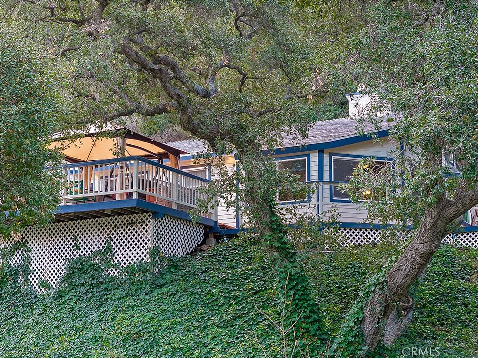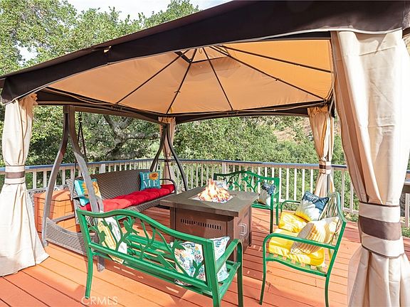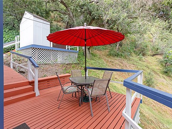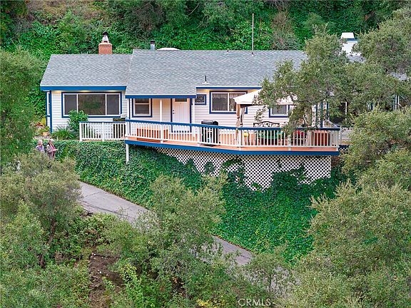 Perfect for a relaxing sunset view on the over sized front deck, this canyon retreat boasts a beautifully secluded, treehouse location in rural Silverado Canyon. Meticulous care has been taken to maintain and improve this lovely home. The exterior structure and decking has been recently painted, plumbing has been replaced, electrical updated, roof replaced, central air and heat added, and driveway repaved. Several sheds have been added for convenient storage. The interior of the home has hardwood floors throughout. Stay snuggled near the fireplace while enjoying the gorgeous canyon views from the living room bay window window seat. Another fireplace keeps the Master bedroom cozy, and a third wood burning stove is near the entry/dining room. The game room takes advantage of the view with extensive windows and access to two patios. The large master bedroom has an en suite bathroom and access to a private patio. The hallway has new cabinetry and the guest bathroom is remodeled and upgraded. With easy access to the Maple Springs Gate, hiking and biking opportunities are close by.