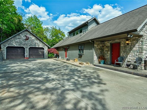 Beautiful home nestled among the tall trees & beautiful waters of Lake of the Ozarks. Elevated slightly above the Gravois arm offering amazing views while giving you a feeling of being in a cozy treehouse. The exterior of the home is concrete board & stone with colors that blend seamlessly with the natural surroundings. Upon entering you immediately feel a sense of warmth and coziness. Large windows provide stunning views of the surrounding landscape while the living area features a fireplace & access to a spacious deck. Fabulous kitchen with custom cabinets, Bosch appliances, & granite tops. The master is huge and is on the main level as well as an office area/sewing room. There are 4 additional bedrooms & a storage area/workshop on the lower level as well as a family room & sunroom. Overall this home is a perfect retreat for those seeking a peaceful escape from the hustle and bustle of everyday life. Bask in the beauty and privacy of nature while enjoying all the comforts of home!