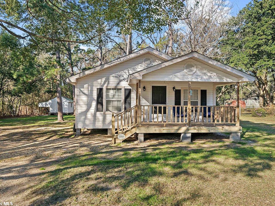 Rare find in Spanish Fort! This adorable cottage is situated on a peaceful acre lot on a low-density street. Minutes from shopping and restaurants, and in the desirable Spanish Fort school district. From the minute you pull into the driveway, you will immediately feel the serene setting this property has to offer. You can enjoy nature as you relax on the back porch, taking in the scenery and wildlife. The roof was replaced in 2018, there is a nice outdoor shower, and 2 outbuildings. One of the outbuildings has power and a lean-to, which would make a great workshop! The home itself has been well maintained and the original oak floors are beautiful! The kitchen is open, there is a large laundry room, and an upgraded bathroom.