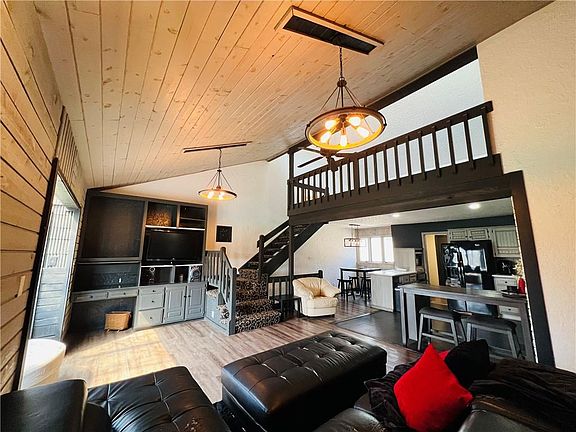 Step inside to find a main floor master suite complete with a cozy sitting room—perfect for unwinding. The open-air loft adds charm and versatility, ideal for a home office, studio, or relaxation space, all while overlooking the main living area for an open, airy feel. The kitchen is a delight, featuring ceramic tile, painted cabinets, and elegant granite countertops—perfect for entertaining or everyday living. Downstairs, enjoy a spacious basement recreation area, plus two additional bedrooms—each with private entrances, offering ideal guest accommodations. Car lovers and hobbyists will be thrilled by the massive 30x60 detached five-car garage, offering endless storage and workspace potential.