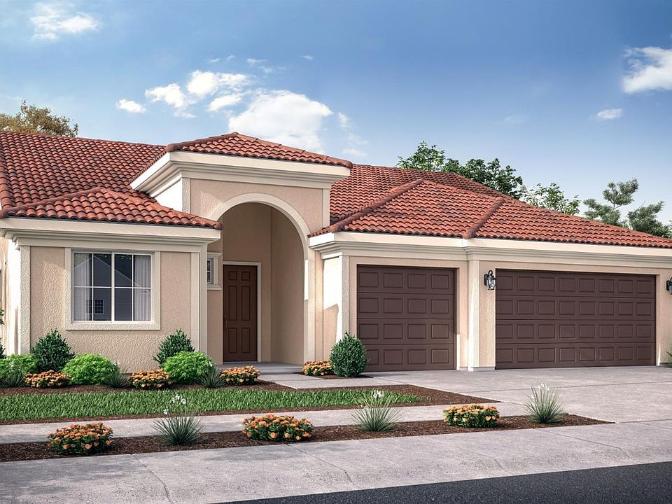 This home features 4 bedrooms, 2.5 bathrooms, three car garage, and a covered patio. If you're looking for a gourmet kitchen, look no further! This home features a large kitchen with granite counter tops, recessed lighting, stainless steel appliances, and pendant light prewires over the large island, and plenty of cabinets for storage. This home will also have beautiful molded interior doors throughout, ceiling fan prewires in great room, owners' suite, and covered patio, a separate bath tub and shower in the master bedroom as well as a large walk in closet. The hall bathroom features dual sinks. All this with a Spanish Style exterior and there is still time to customize your counter tops and flooring. Make your appointment today to see this beautiful home.